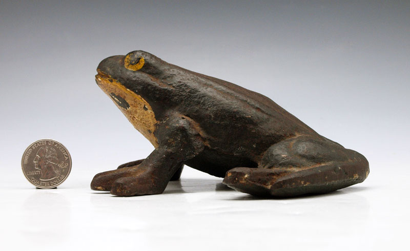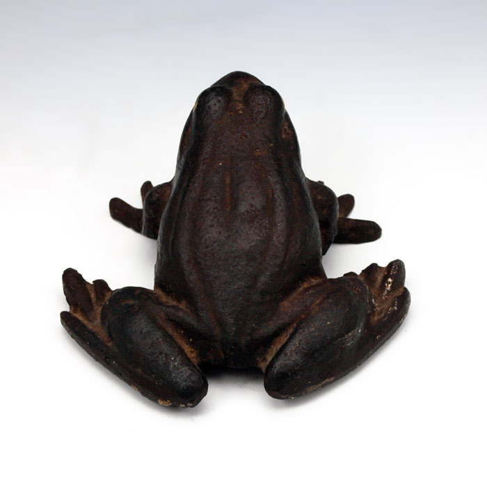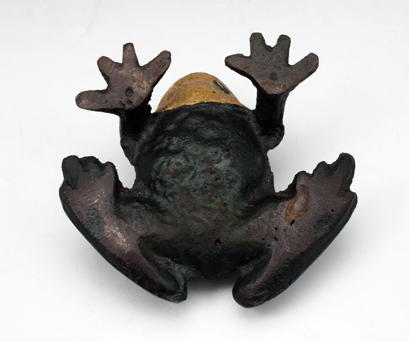CAST IRON FROG DOORSTOP: Unmarked, 2 3/4'' h. x 5 1/4'' x 5 1/4''