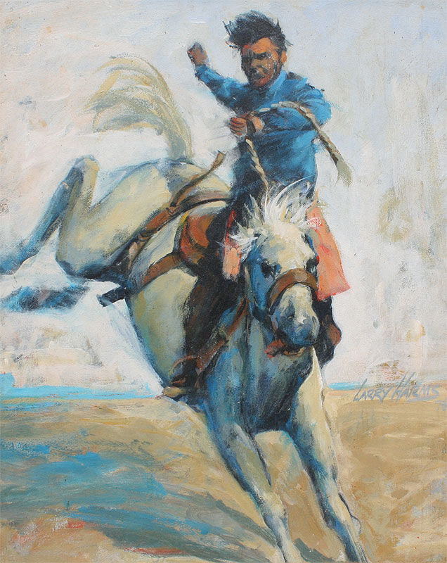 HARMS, Larry, (American, 20th C): Bronco Buster, OIL/Masonite, 20'' x 16'', signed, dated '76, framed, 23'' x 19''.