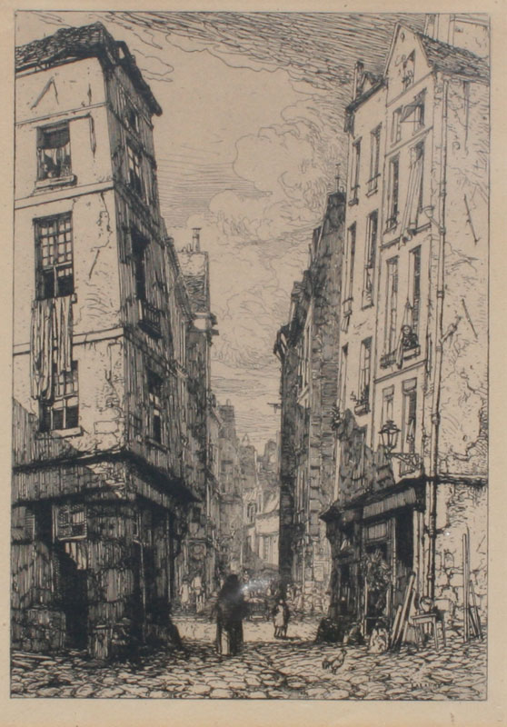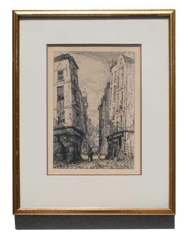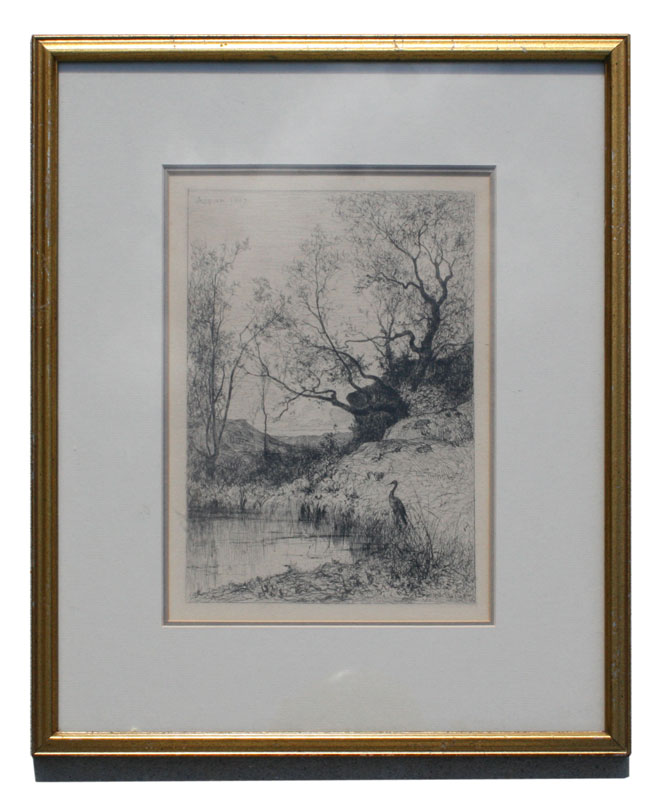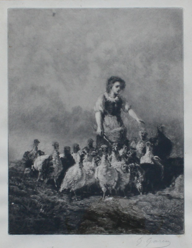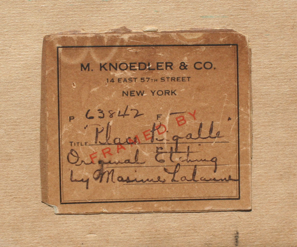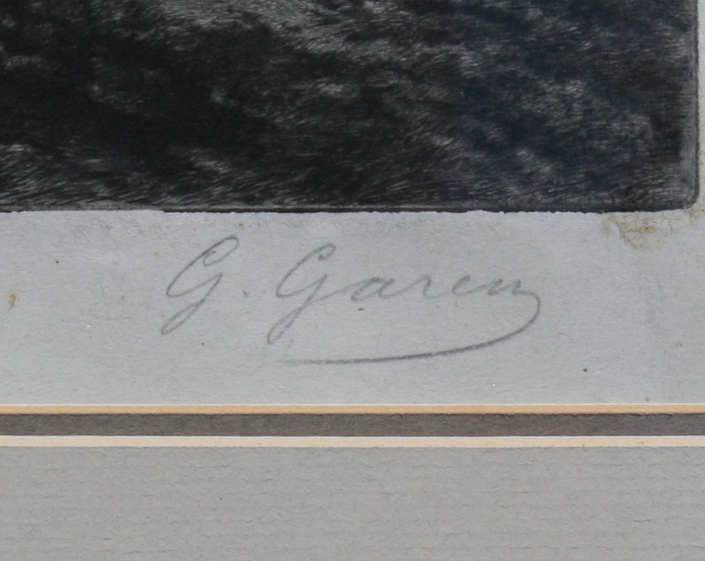 3 PIECE COLLECTION OF ETCHINGS: To include MASIME, Lalanne, (): Place Pigalle, Etching, sight size 10 1/2'' x 7 1/2'', framed, 17'' x 13 1/2''. GAREN, G., (): Turkey Girl, Etching, sight size 12'' x 9 1/4'', pencil signed, framed, 18 1/4'' x 15 1/2''. Original Etching by APPIAN, A., (): ''Une Mare'', Etching, sight size 10'' x 7'', signed in the plate and dated 1867. All bear the Knoedler Gallery label verso.