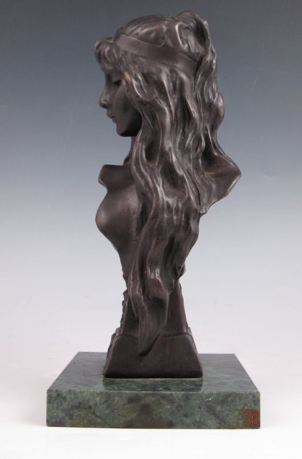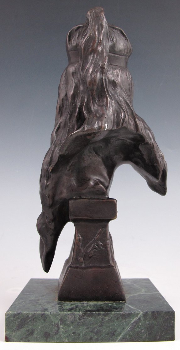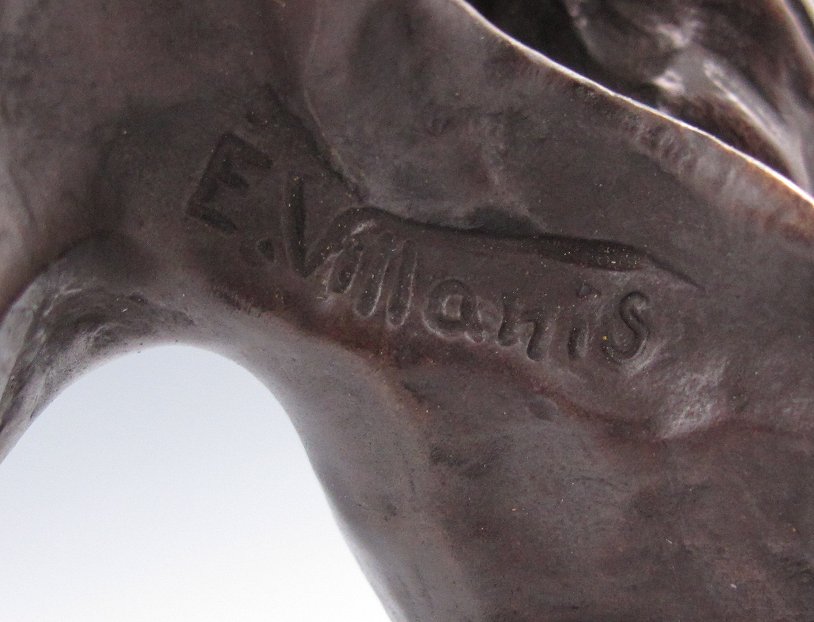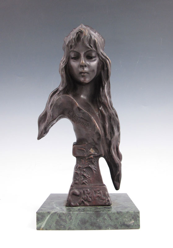 VILLANIS, Emmanuelle, (French, 1880-1920): ''Carmela'', Bronze, 7 7/8'', incised signature, polished marble plinth, 8 3/4''.