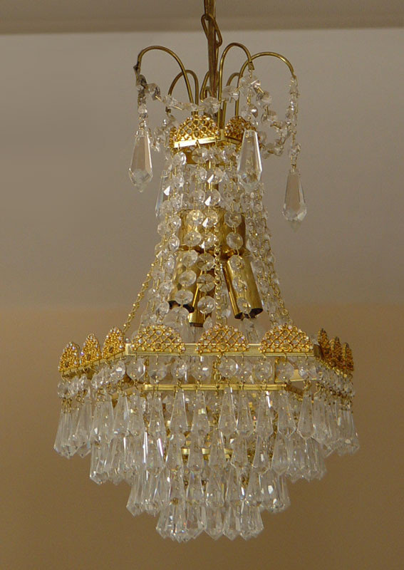 MINI CZECH CRYSTAL CHANDELIER: 3 light, 14'' h. x 9'' excluding chain.