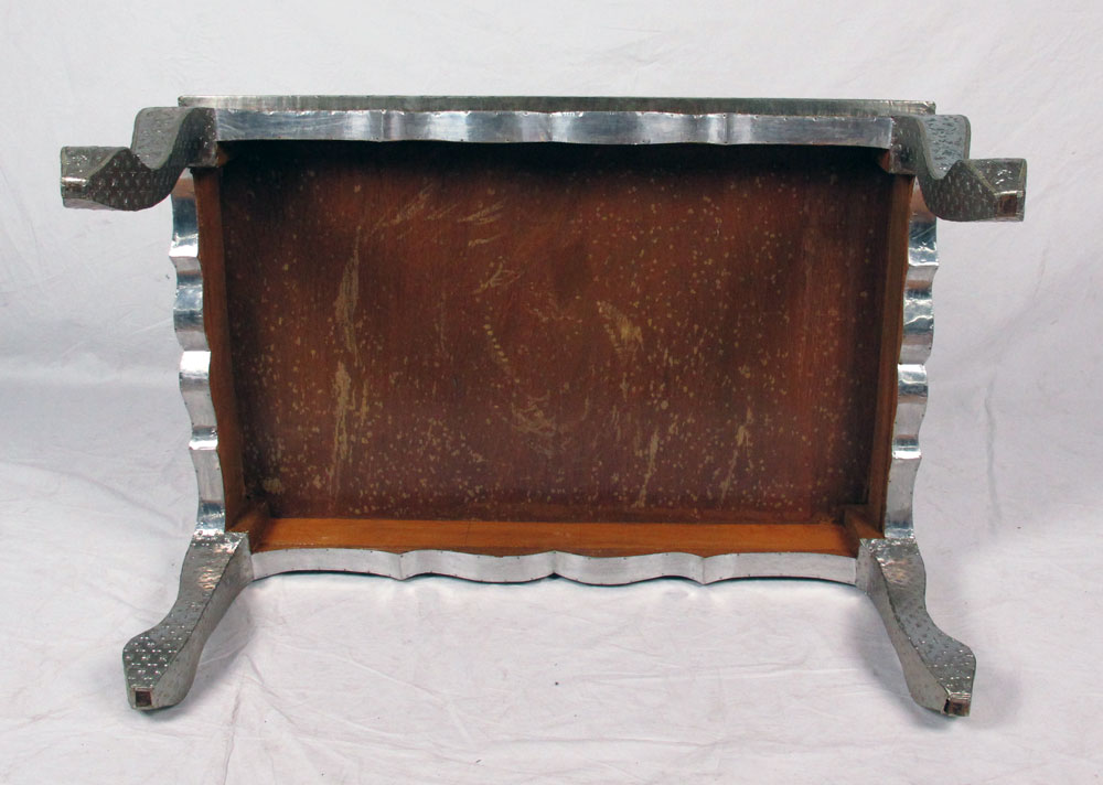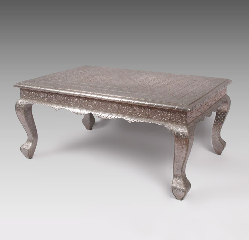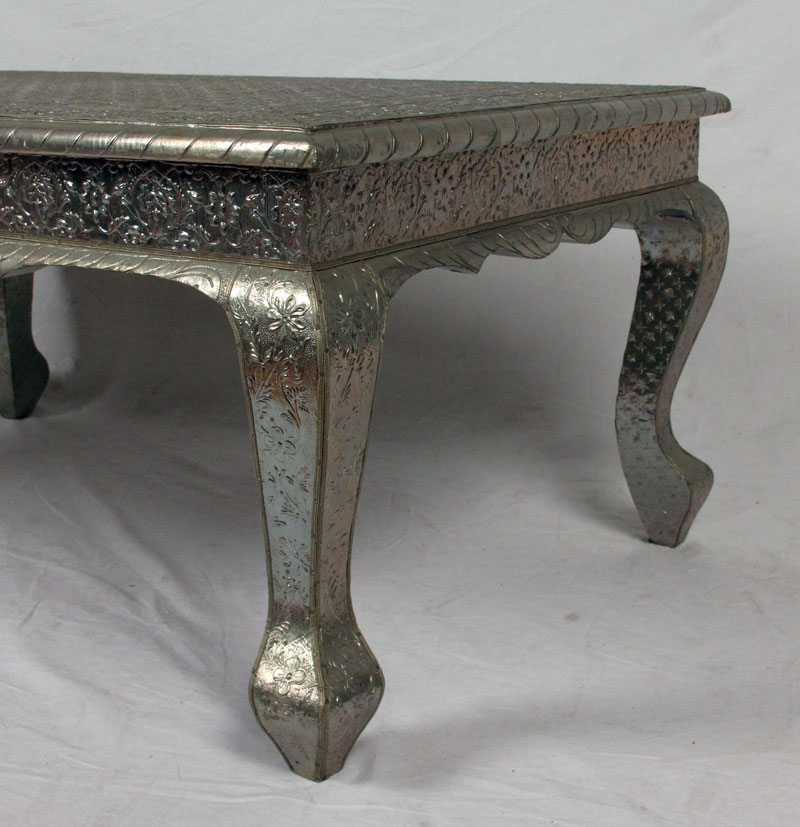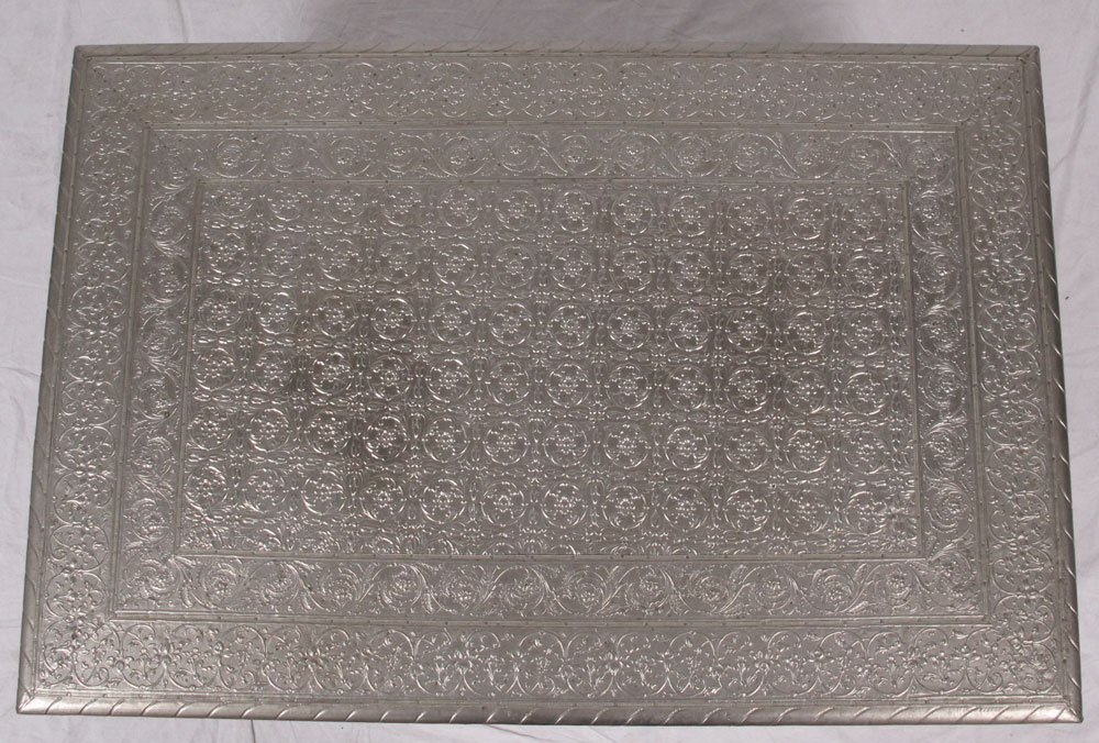 PERSIAN EMBOSSED METAL CLAD LOW TABLE: 16'' h. x 36'' x 24''.