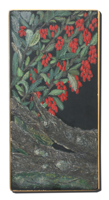 ALCOTT, Abigail May, (American, 1840-1879): Botanical Study of a Tree Branch and Flowers, OIL/Board, 12'' x 6'', inscribed verso 'Painted by May Alcott Given J. H. Adams by Louisa Alcott', unframed.