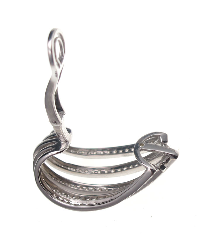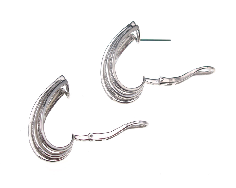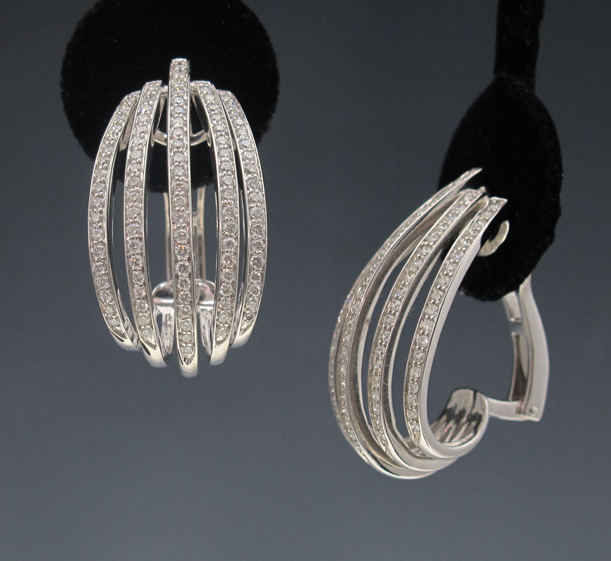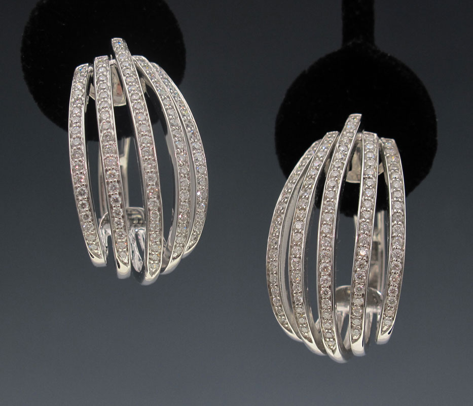 18K GOLD AND DIAMOND EARRINGS: 18K white gold earrings contain 19 round brilliant cut diamonds, approx total weight 2.85 Ct., averaging VS clarity and G-H color. The diamonds are bead set. Weight 18.0 grams. Sold with current Florida Diamond Appraisers GIA appraisal for $7,350.