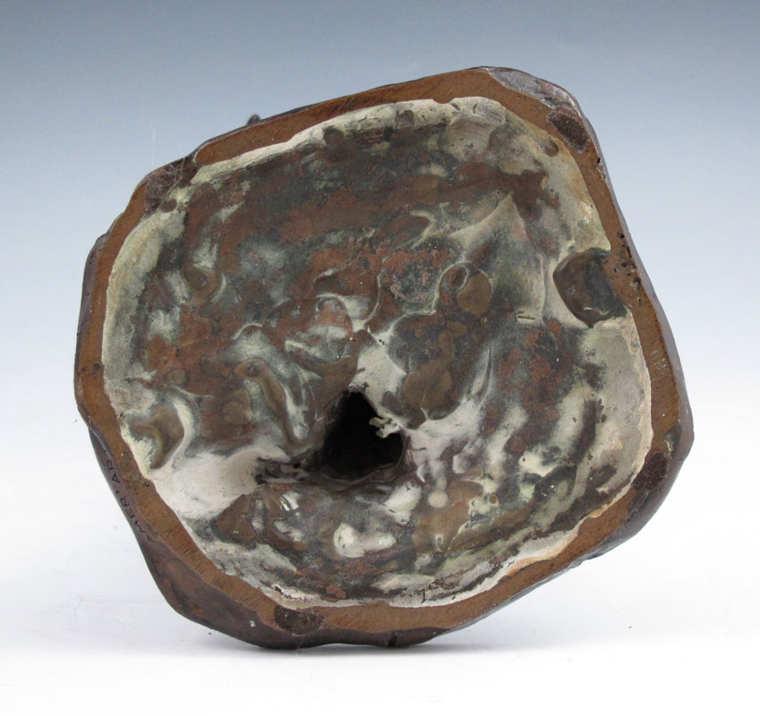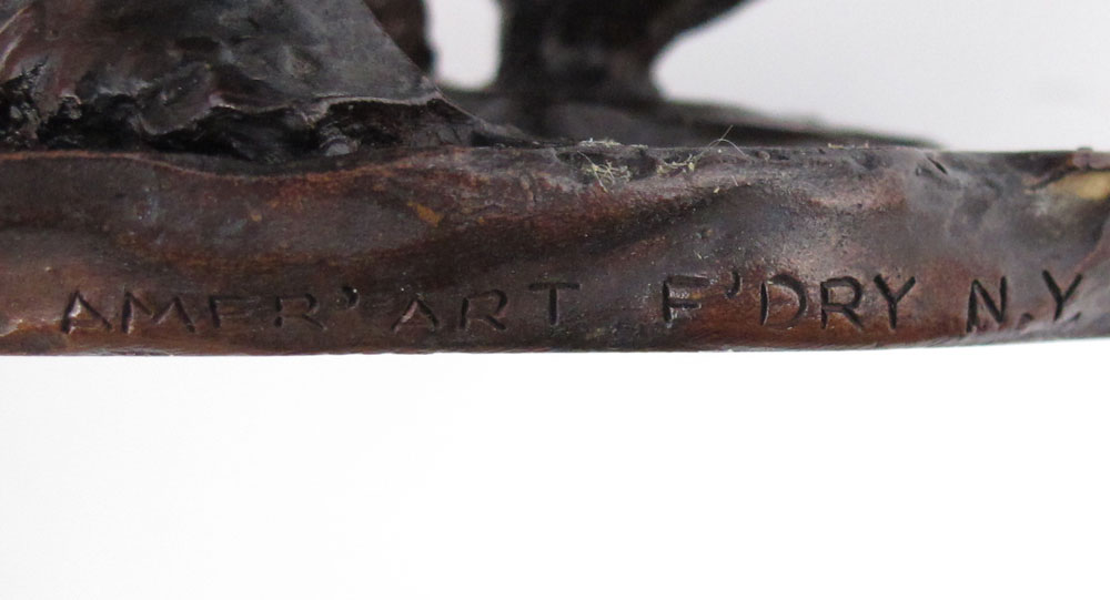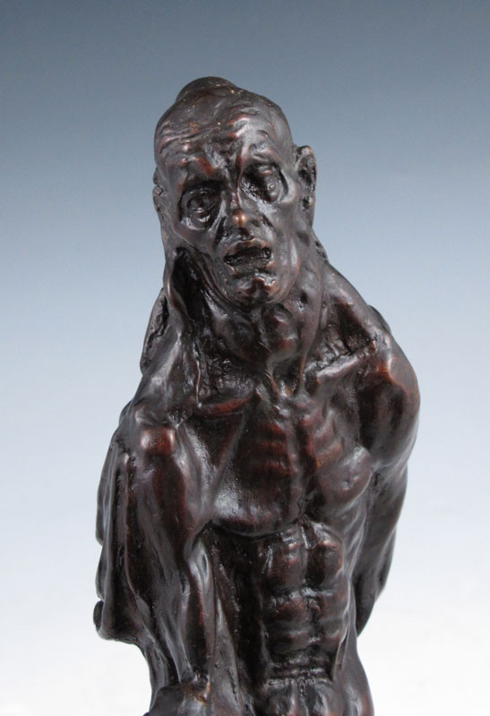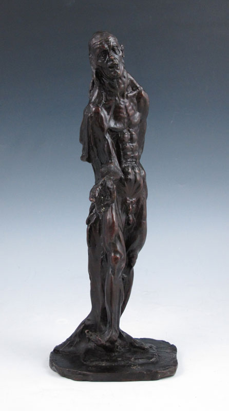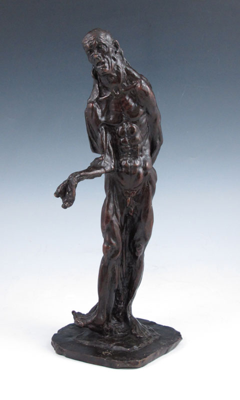 STANDING FIGURE OF A GROTESQUE NUDE MAN WITH CAPE: 12 1/2'' h, incised American Art Foundry, New York, no visible signature.