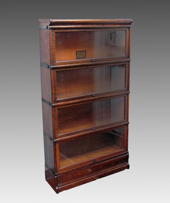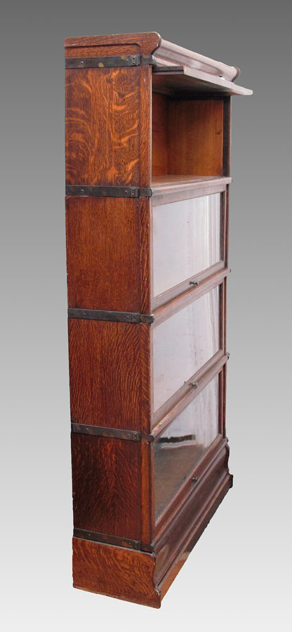 GLOBE WERNICKE 4 STACK TIGER OAK BOOKCASE: C-11, Approx. 62'' tall X 34'' X 10''.