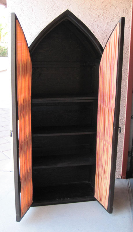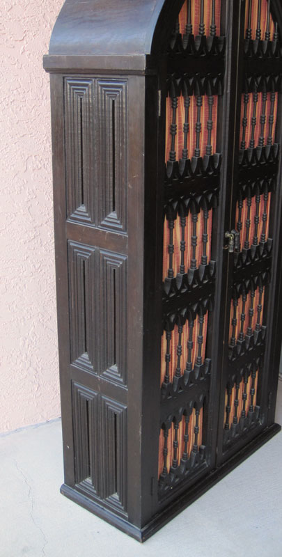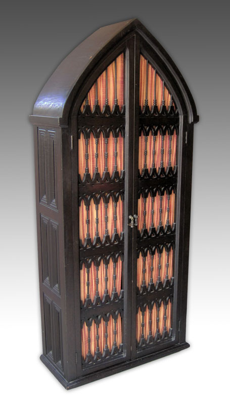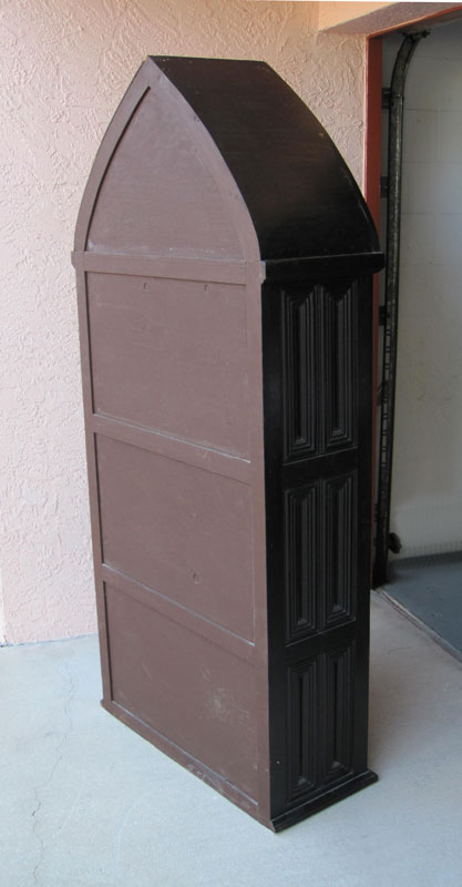 GOTHIC STYLE CATHEDRAL ARCH BOOKCASE CABINET: 75 1/2'' h. x 34'' x 14 1/2''.