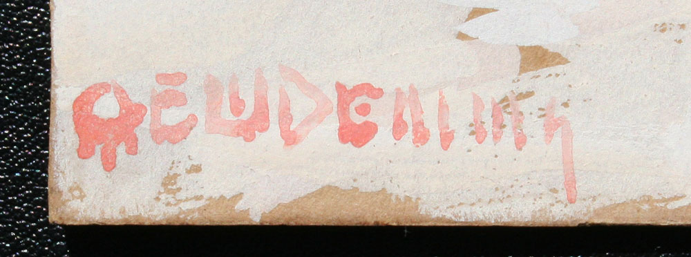 DEMING, Edwin Willard, (American, 1860-1942): Indian Chief, Squaw and Dog on the Plain, 5'' x 4'', signed, period gilded and carved frame, 7 3/4'' x 9 1/2''.
