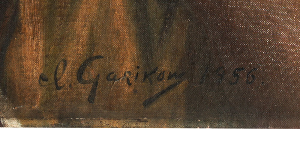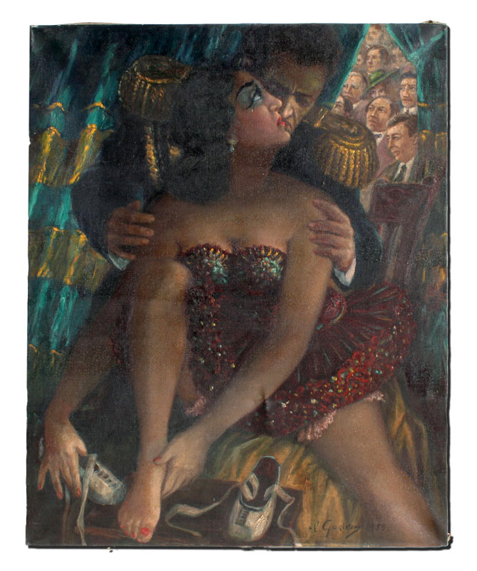 GARIKOW, Ivan I. (American/Austrian, 1918-1982): Spanish Officer with Spanish Ballerina Backstage, OIL/Canvas, 36'' x 29'', signed, dated 1956, unframed.