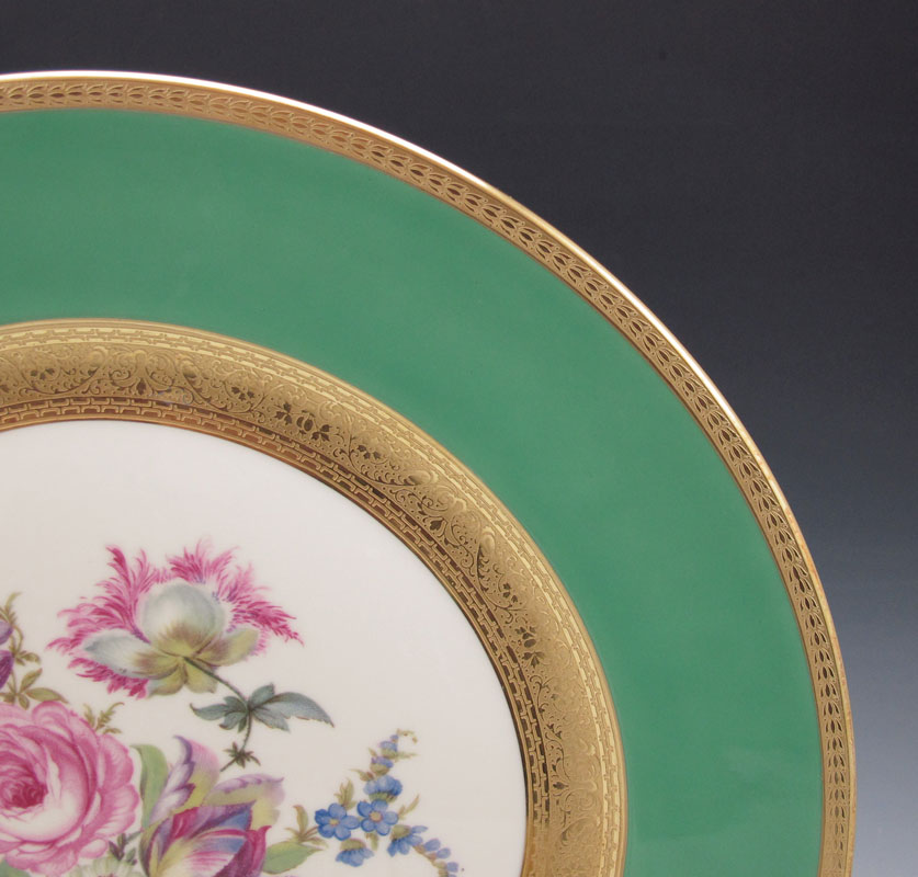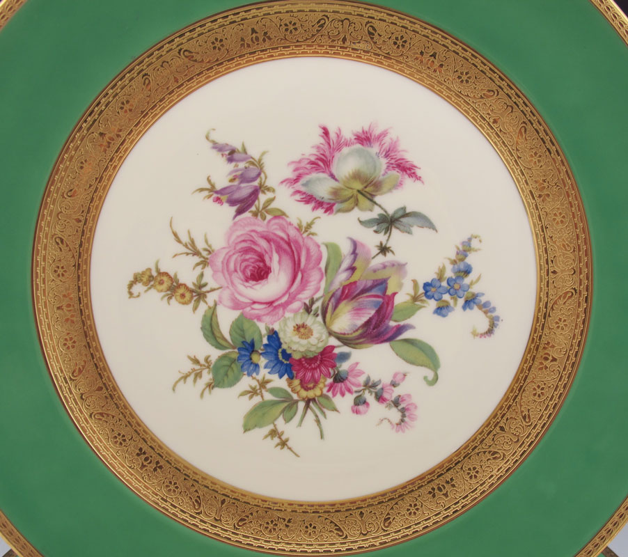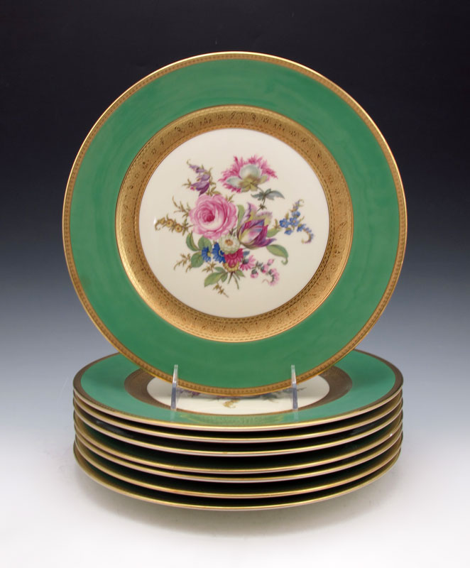 SET OF 8 THOMAS BAVARIA GOLD RIM SERVICE PLATES: Each centering a floral center. Measures 11'' dia. Thomas is a part of the Rosenthal group.