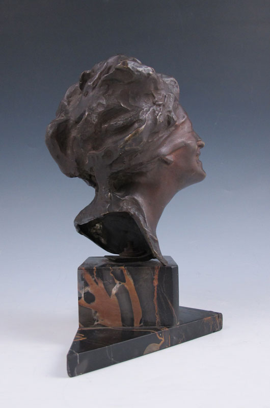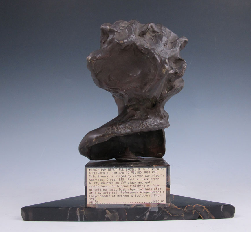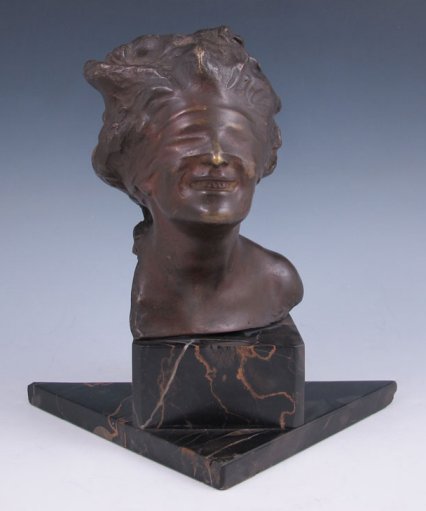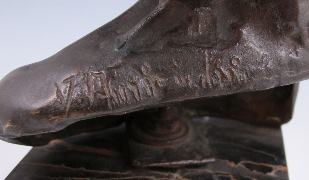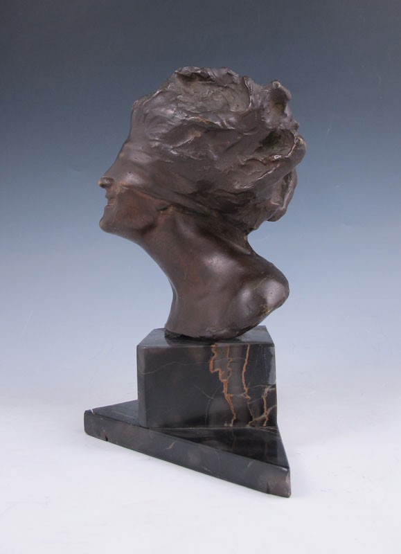 AURISICCHIO, Vincenzo, (Italian, 20th C.): ''La Fortuna'', Bronze, 6'' h, polished stone plinth, 8'' h overall, incised signature.