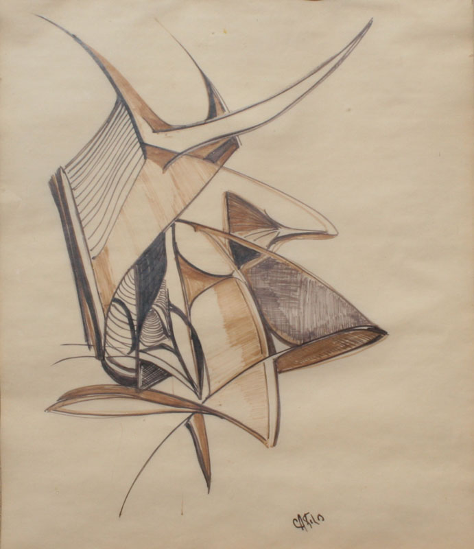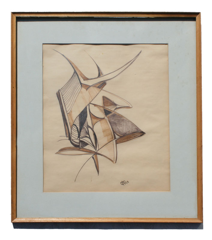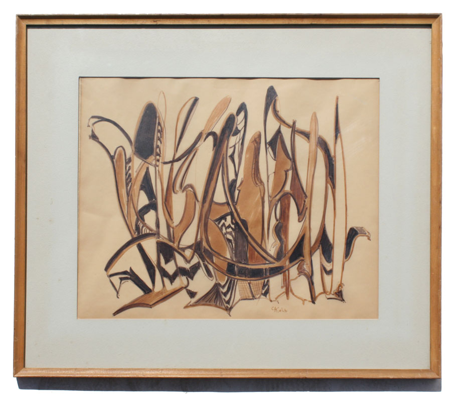 KOLB, Clara Alexander, (American, 20th C.): 2 piece abstract drawing lot, sight size 13 1/4'' x 16 1/4'', signed, framed, 20'' x 23''.