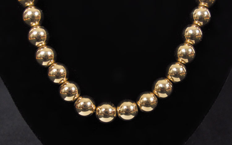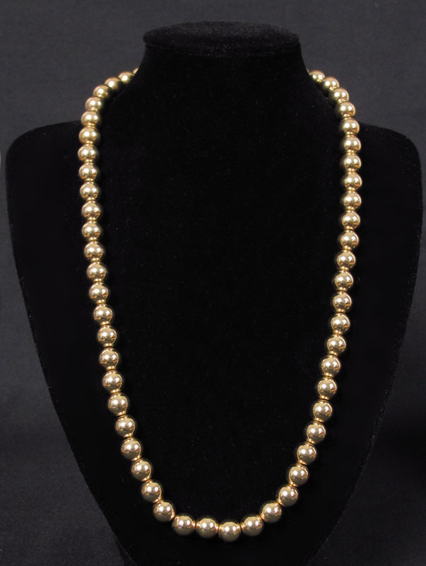 14K ADD-A-BEAD NECKLACE: 14K yellow gold 8.50 mm add-a-bead necklace. Spring ring closure. Length: 20'' Weight: 29.5 grams.