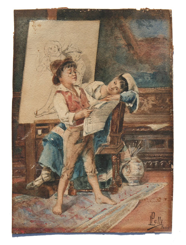 BECHI, L. Polli Da, (Italian, 1830-1919): Children in the Artist Studio, 10'' x 7 1/4'', signed, unframed.
