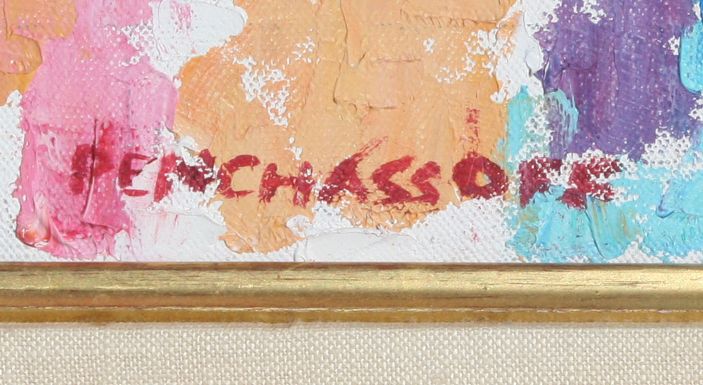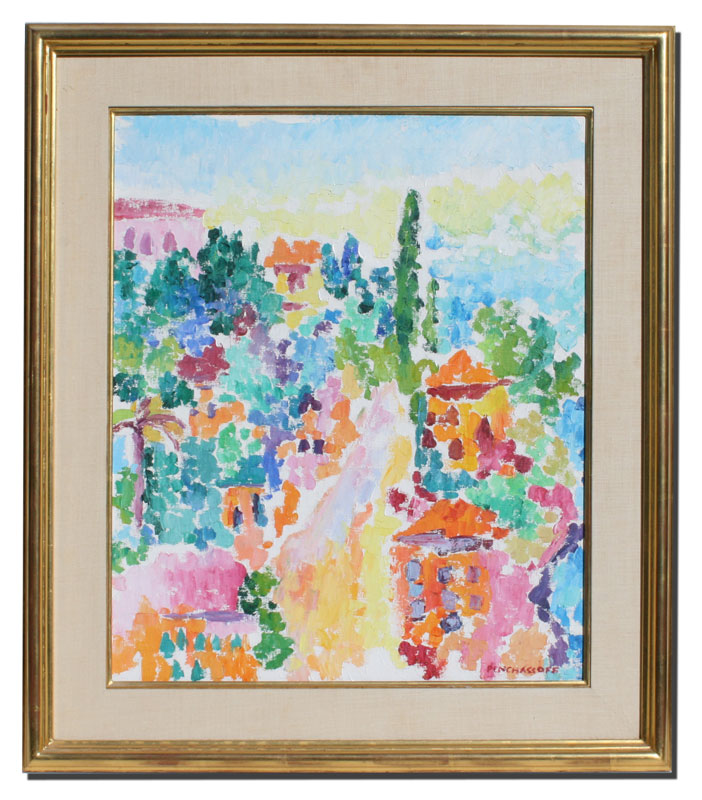 PENCHASOFF, Anne, (French, 20th C.): Pointillist Landscape, OIL/Canvas, 24'' x 20'', custom gilded framing, 31'' x 27''.
