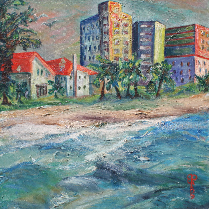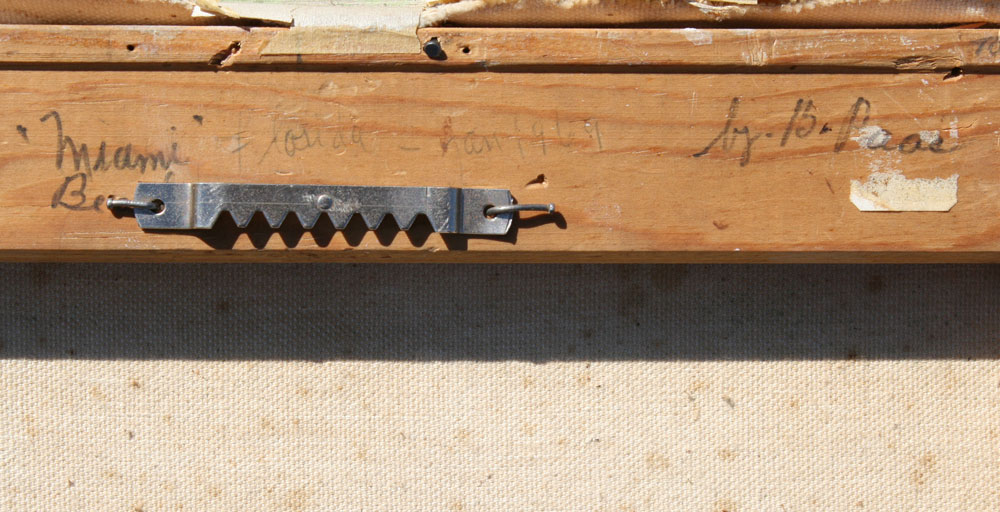PAAS, B., (American, 20th C): Miami Beach Florida 1969, OIL/Canvas, 14'' x 14'', signed, titled and dated verso, painted frame, 16'' x 16''.