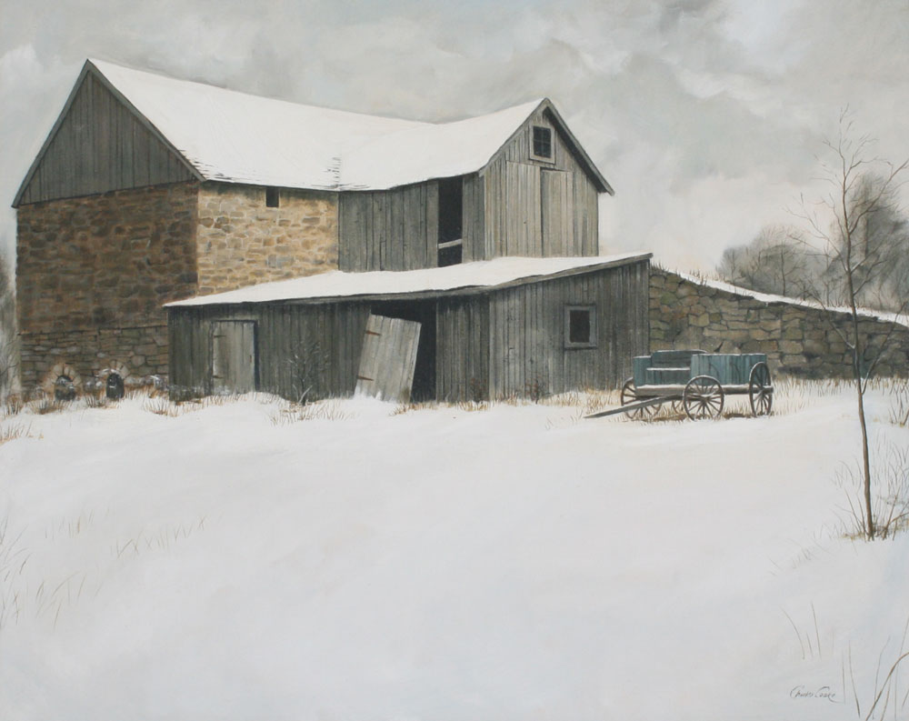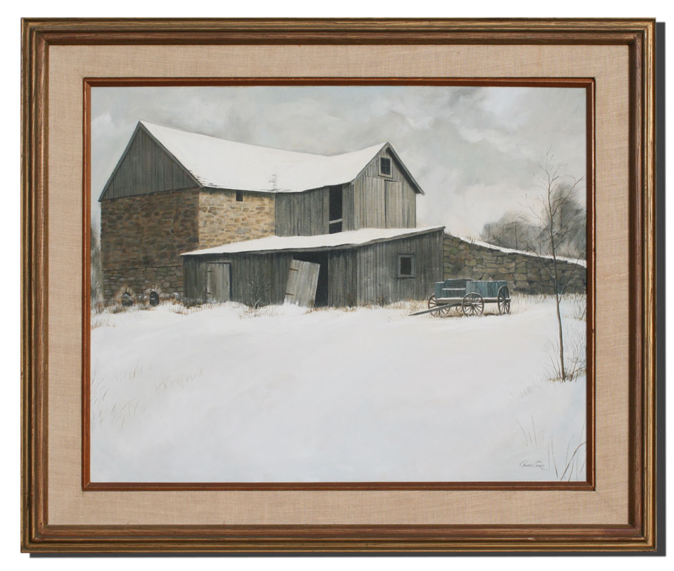 COAKE, Charles, (American, 20th C): Snowy Barn Landscape, OIL/Canvas, 24'' x 30'', signed, framed, 32'' x 37''.