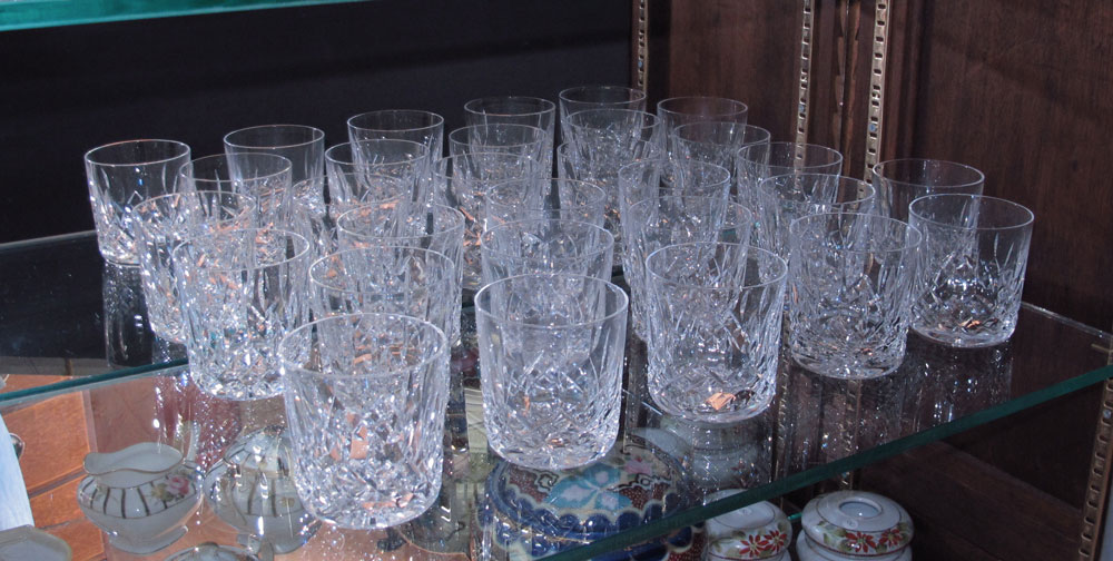 15 WATERFORD CRYSTAL OLD FASHIONED TUMBLERS: Lismore pattern, approx. 3 1/2'' tall.