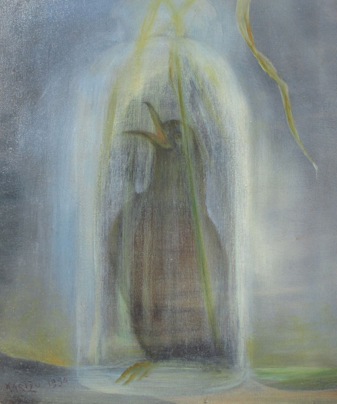 ZUKOWSKI, Karin, (American, 20th Century): ''Agony and the Lily'', OIL/Canvas, 30'' x 17'', signed Karizu '94, framed, 31'' x 18''. Noted and well exhibited artist.