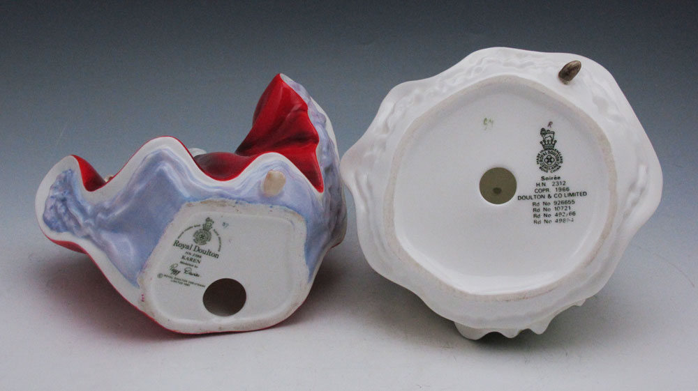 2 ROYAL DOULTON FIGURINES: To include 1) Soiree HN2312, 7 1/2'' h. 2) Karen HN2388, 7 7/8'' h.