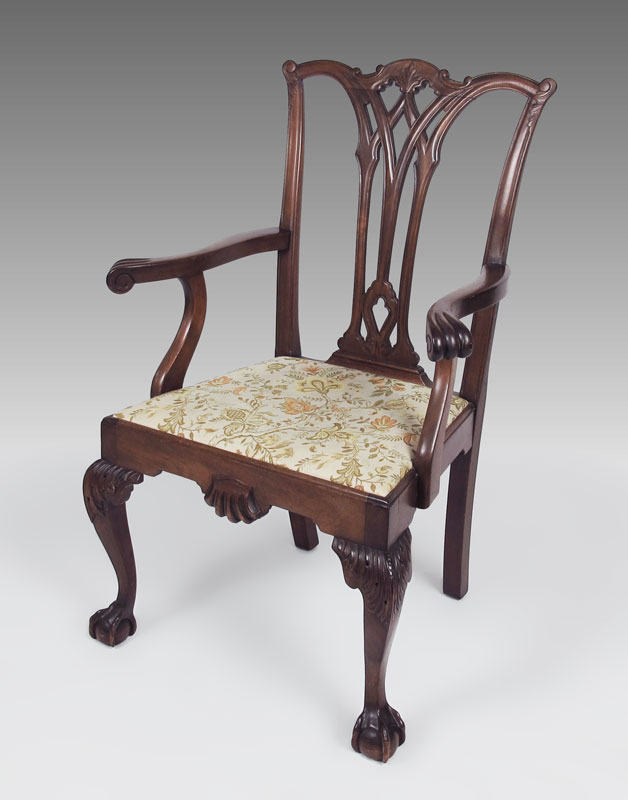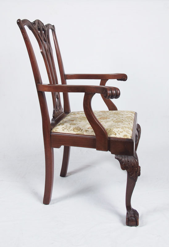CENTENNIAL CHIPPENDALE ARM CHAIR Ca. 1876: On ball and claw feet. Approx. 40 1/2'' tall.