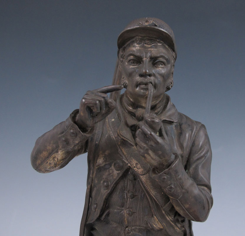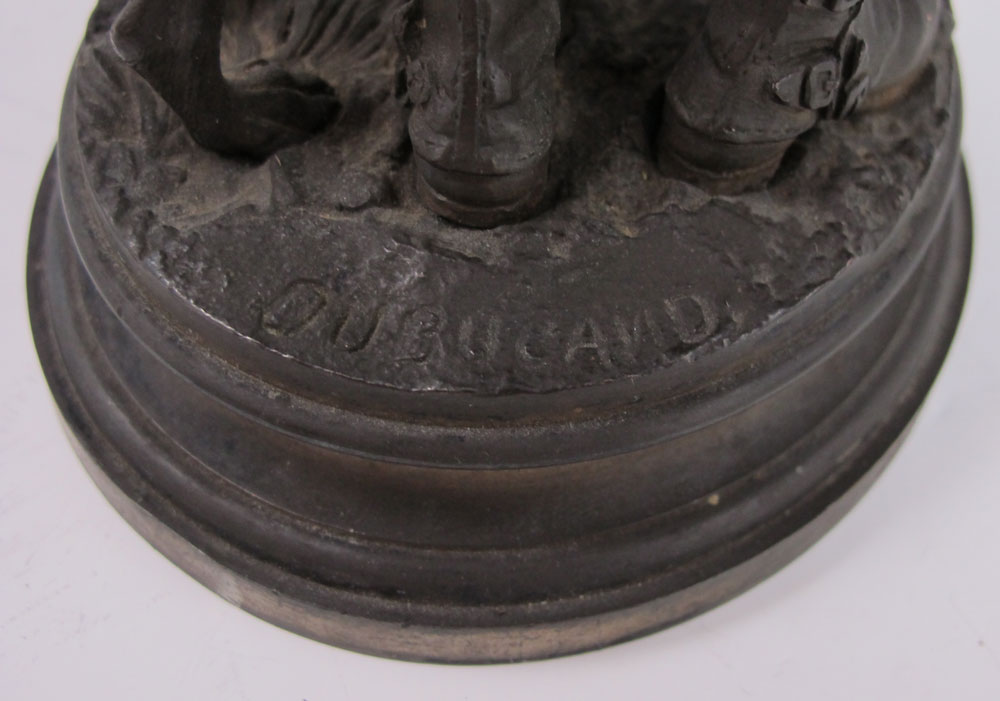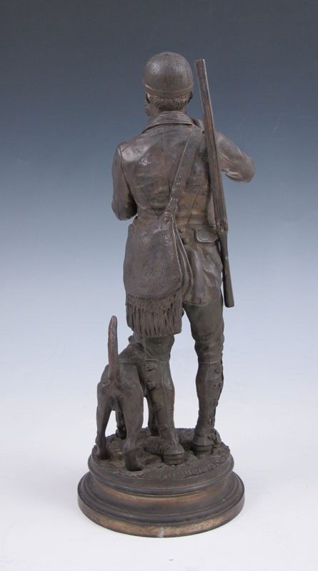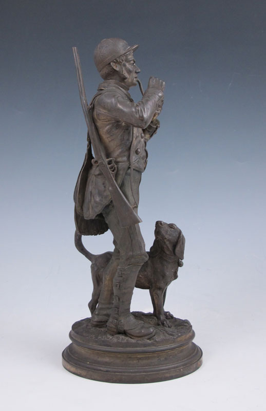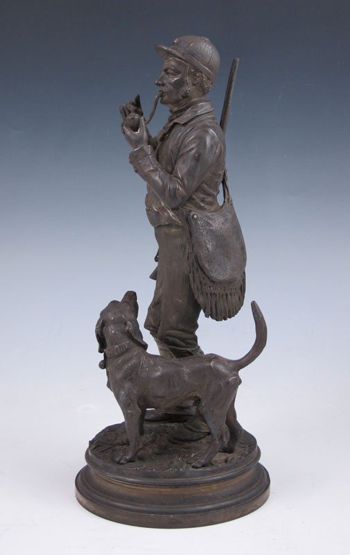 DUBUCAND, Alfred, (French, 1828-1894): Huntsman After the Hunt Smoking Pipe with Faithful Hunting Dog, Bronze, 10 1/4'' h, incised signature.