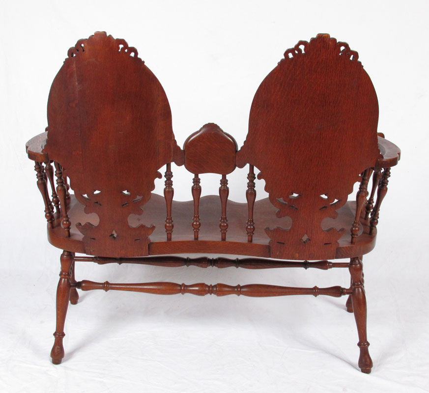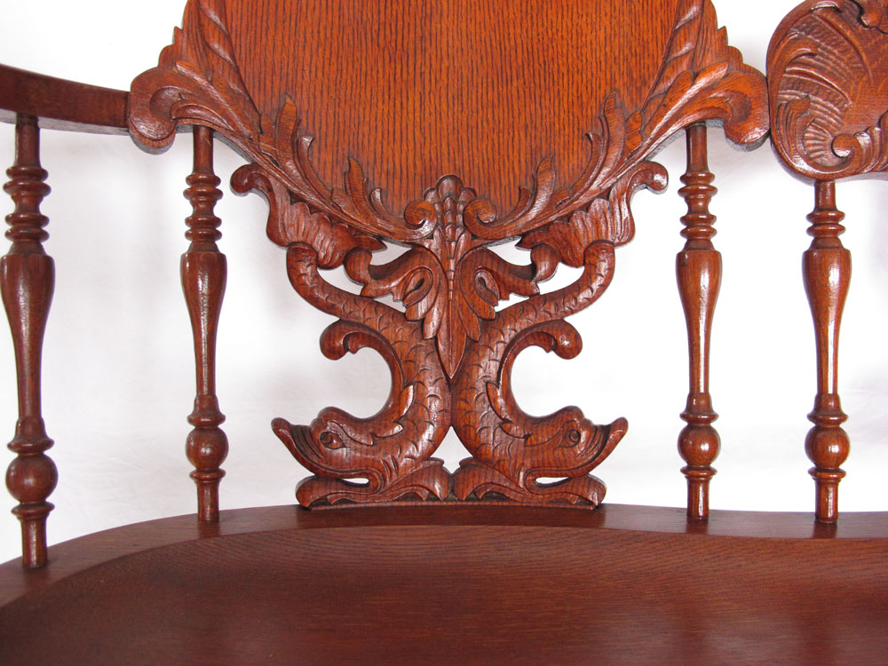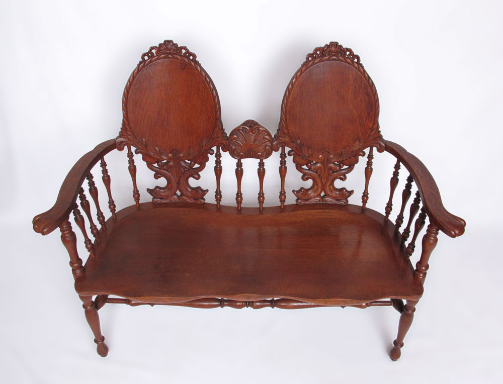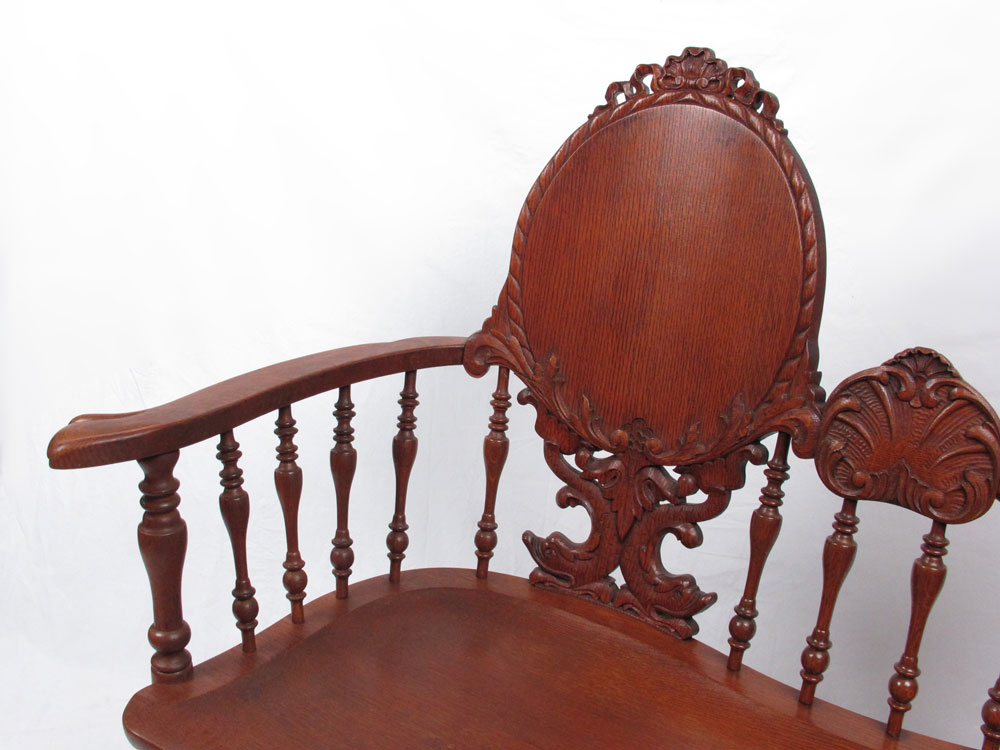 CARVED OAK SETTLE: 38 3/4'' h. x 47 1/2'' x 24''