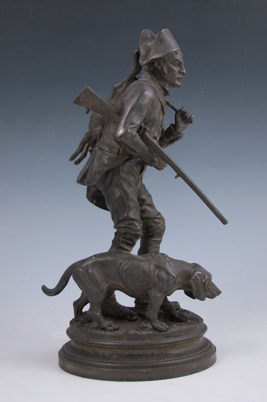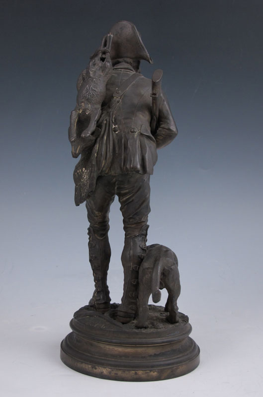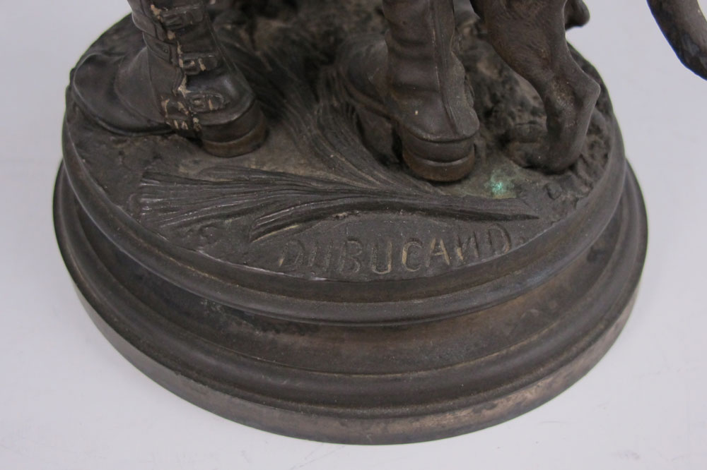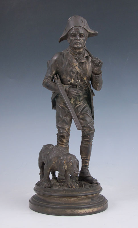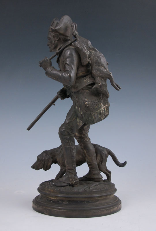 DUBUCAND, Alfred, (French, 1828-1894): Huntsman After the Hunt with Rabbit Over his Shoulder Shotgun Underarm and Faithful Dog, Bronze, 9 1/2'' h, incised signature.