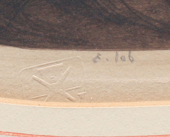 CONDITION: Laid on board, trimmed margins, 16 1/2'' x 23 3/4'' rounded corners, glue residue in margins.