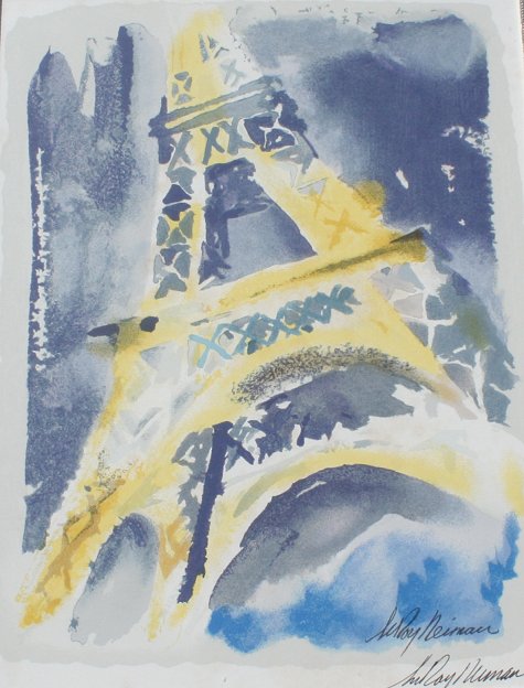 NEIMAN, Leroy, (American, 20th century): ''Eiffel Tower'', Lithograph, sight size 27 1/2'' x 21'', signed lower right, custom silver gilt frame with minor wear, 37 1/2'' x 31''.