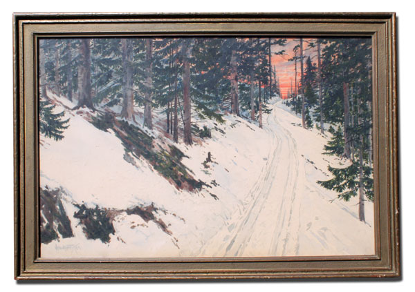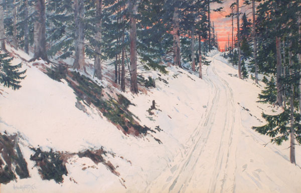 VON HOFSTEN, Hugo Olaf, (American, 1865-1947): Winter Trail Landscape, Watercolor, sight size 19 1/2'' x 29'', signed, period frame, 23 1/2'' x 33 1/2''.