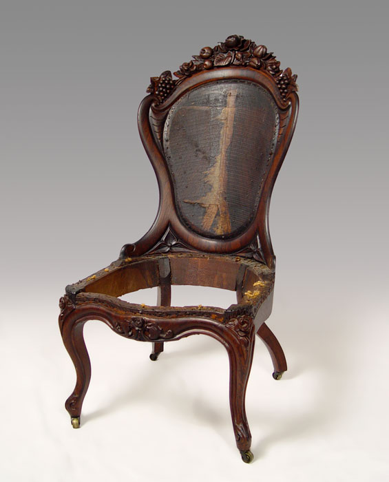 BELTER ROSEWOOD LAMINATED SIDE CHAIR CA 1850: ''Rosalie with Grapes'' Pattern. Museum Collection. 36 1/2'' x 18'' x 18''.