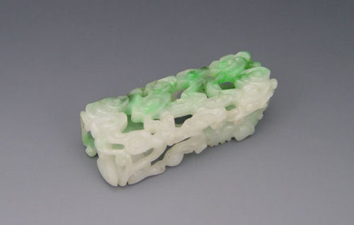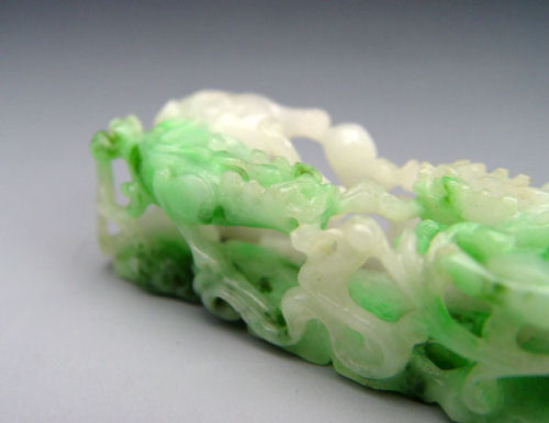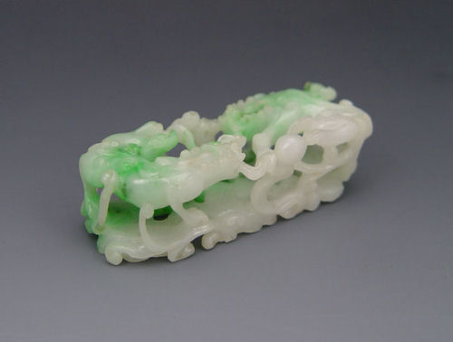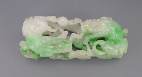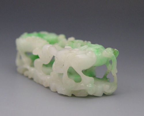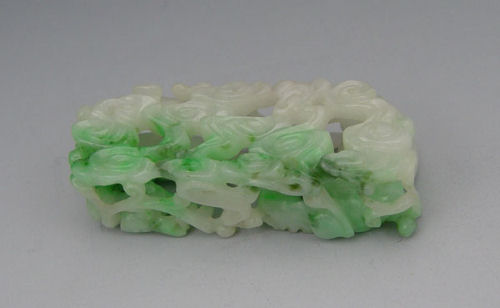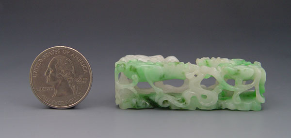 CHINESE JADEITE SLIDE: Highly articulated with mythological beasts and clouds, 2 1/4''l.