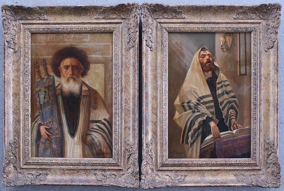 SZEWCZENKO, Konstantine, (Polish, 1909-): 2 Paintings, Rabbis with Torah & Tefilin, Oil/Board, 10'' x 12'', signed, matching gilded and painted frames, 18'' x 14''.
