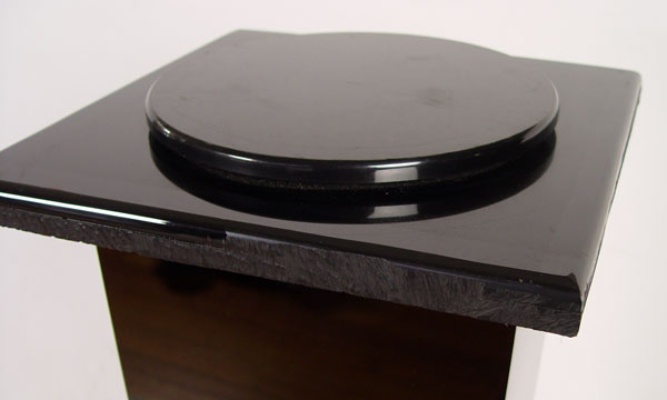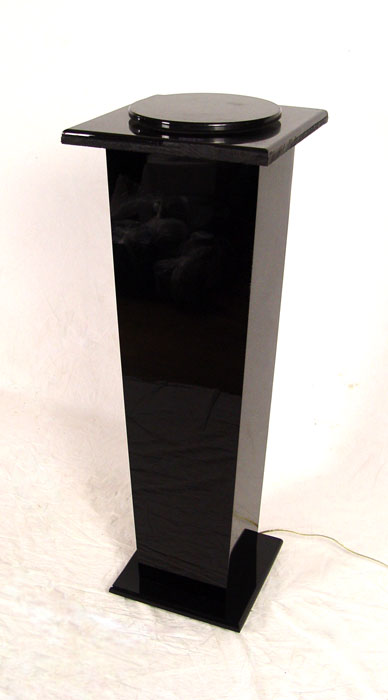 CUSTOM MOTORIZED ACRYLIC SCULPTURE PEDESTAL: 39 1/2'' h., 14'' x 14'' top, circular rotating disc allows for superior viewing of your treasured sculpture.