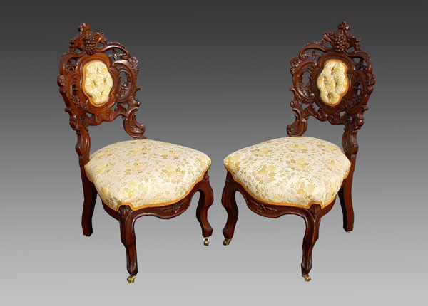 PAIR VICTORIAN ROCOCO CARVED PARLOR CHAIRS: 36''h. x 18''w. x 20''d.