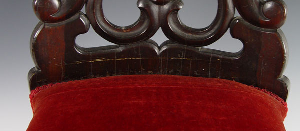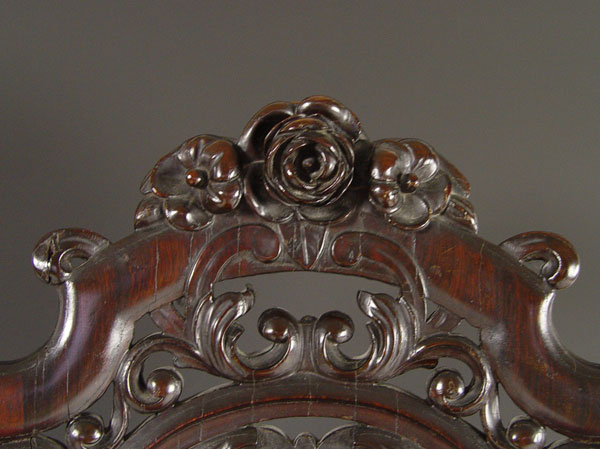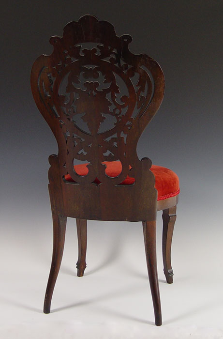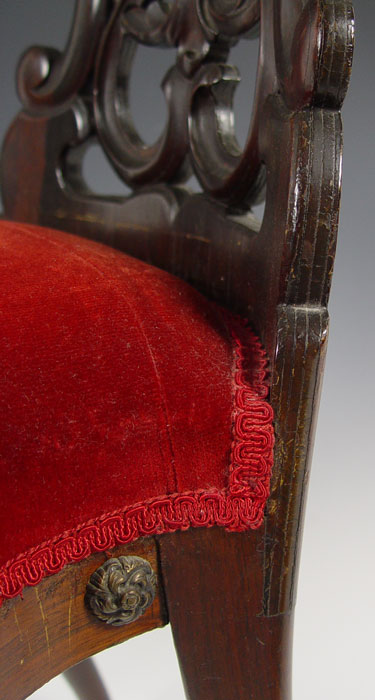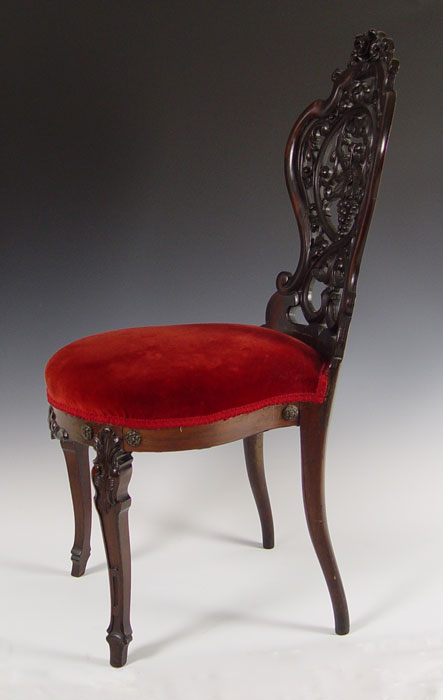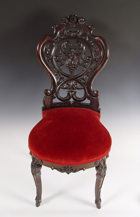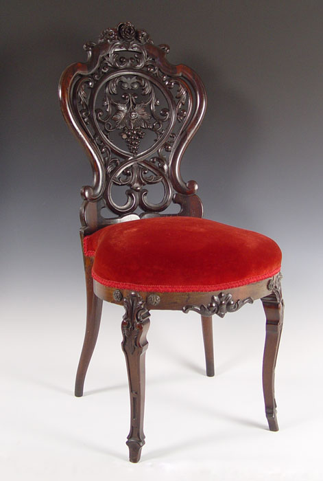 RARE CHARLES KLEIN CARVED PARLOR CHAIR: New York. Klein worked in the same era as Belter or Meeks. Laminated construction. Chair identification through Klein family provenance shown at www.belterfurniture.net