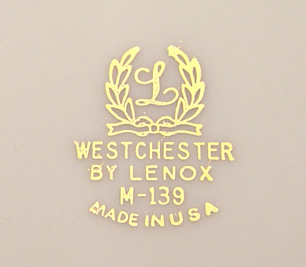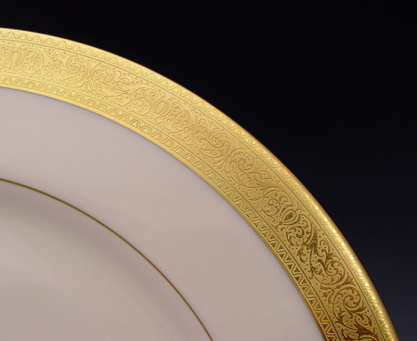 LENOX GOLD ENCRUSTED RIM CHINA IN THE WESTCHESTER PATTERN: 56 pieces to include 12 dinner plates, 12 salad plates, 8 soup bowls, 12 cups and 12 saucers.