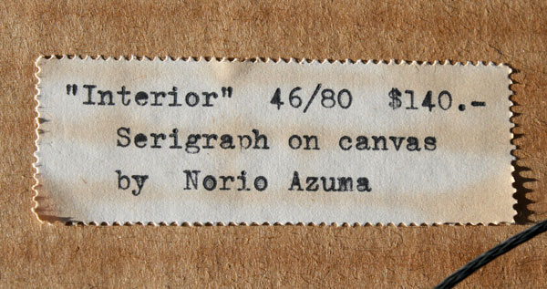 AZUMA, Norio, (American, 1928-): ''Interior'', Serigraph on Canvas, 22'' x 22'', signed, titled, numbered 46/80, framed, 23'' x 23'', labeled verso.