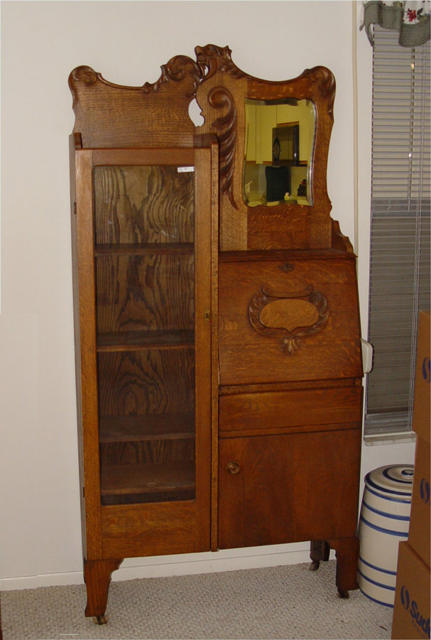 OAK SIDE BY SIDE SECRETARY DESK: Key available in office. 68''h. x 33 1/2''w. x 11''d.