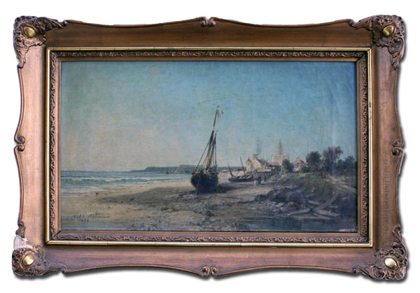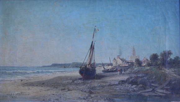 NOEL, Jules Achille, (French, 1813-1881): Treport, OIL/Canvas, 10 3/4'' x 18 1/2'', signed and dated 1876, period gilded gesso frame with wear, 15 1/2'' x 23 1/2''.
