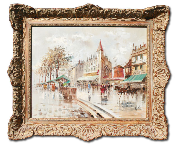 ANTONIO DEVITY PARIS PAINTING OIL ON CANVAS: 16'' x 20'', signed, stencil verso, carved frame, 22'' x 26 1/2''.