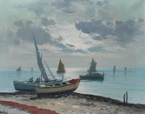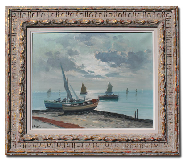 PALINI, A., (Italian, 20th C.): Coastal Scene with Boats, Oil/Canvas, 16'' x 20'', signed, carved frame, 24 1/2'' x 28 1/2''.