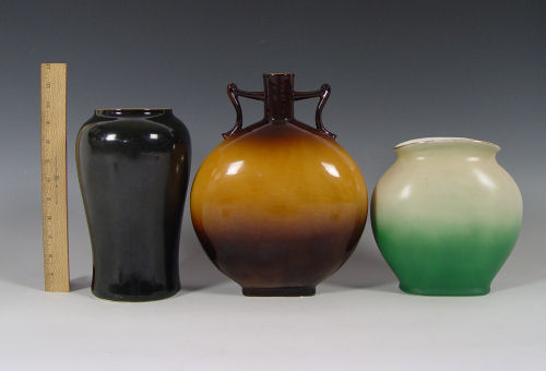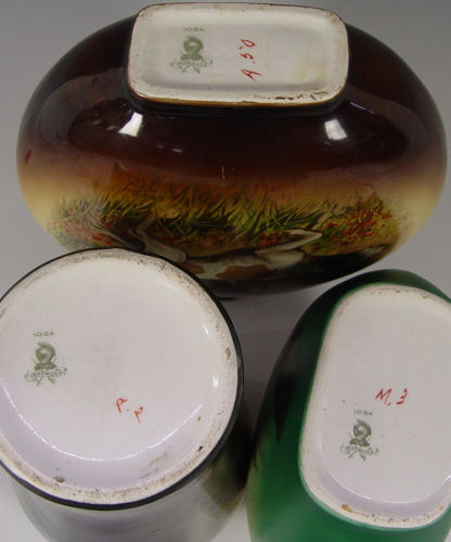 3 WARWICK CHINA VASES: Hunting dog pillow vase, 11 1/2'' tall. 2 portrait vases, 8 and 10'' tall.