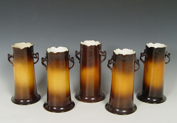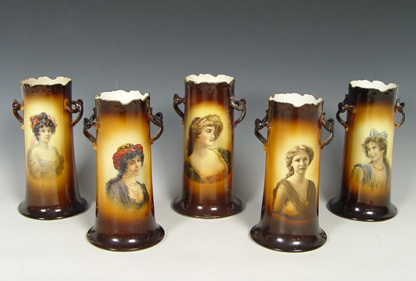 LOT OF 5 IOGA WARE PORTRAIT VASES: Lady portraits, 11'' tall.
