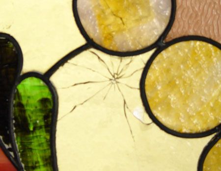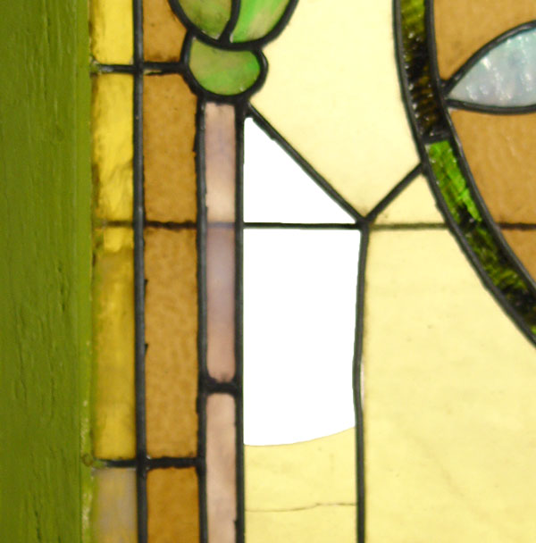 LARGE MASONIC STAINED GLASS PANEL: Square & compass design. Measures panel measures 39 1/2'' x 29 1/2'', framed 43 1/4'' x 34''