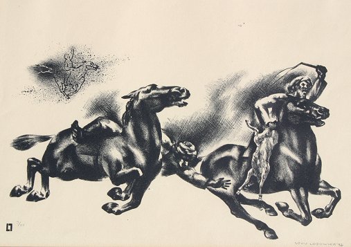 LOZOWICK, Louis, (American, 1892-1973) : ''Goat Ripping, Tajikistan, 1932'', Lithograph, sight size 9 3/4'' x 13 3/4'', Signed lower right, dated '32, numbered 2/25, chrome frame, 17'' x 21''.
