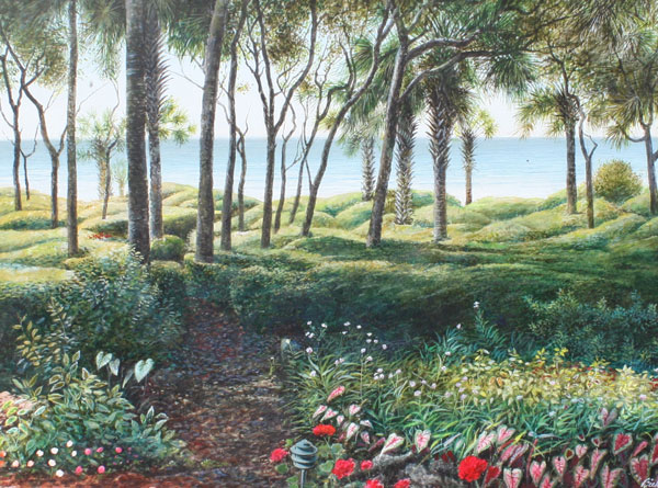 BIEHL, Arthur, (American, 1926-): Tropical Coastline, Watercolor/Masonite, 12'' x 16'', signed, framed, 17 1/2'' x 21 1/2''.