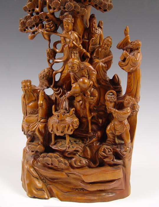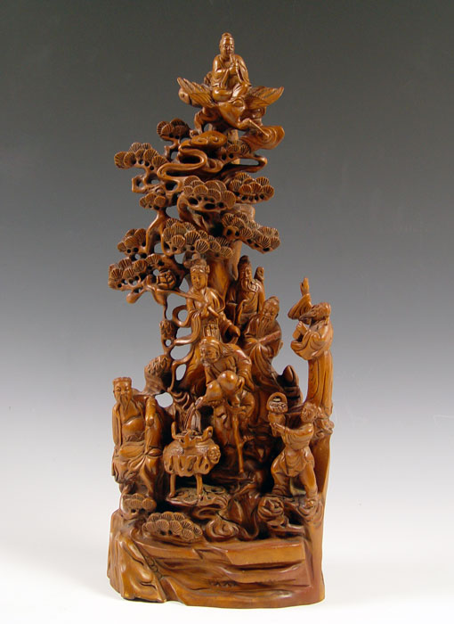 TURN OF THE CENTURY CHINESE CARVED SCULPTURE OF THE 8 IMMORTALS: 21 1/2''