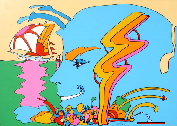 MAX, Peter, (American, 1937-): ''Mystic Sailing'', Serigraph, signed and dated '72, 22'' x 30'', numbered 59/100, framed, 26'' x 33 1/2''.